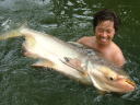 ようやく来た良型。 この145cmでメコンオオナマズ狙い は打ち止めとした |