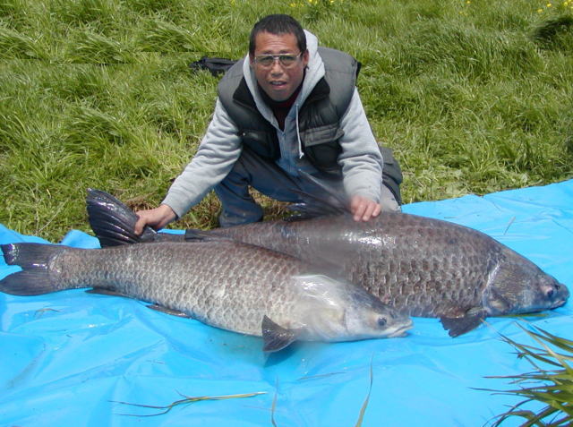 市内観光のかたわらでアオウオ釣堀に立ち寄る。