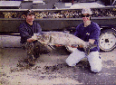*昭和41年12月、北浦宇崎にて網に入った140cm、50kg。埼玉水試にホルマリン保存されている。 |
