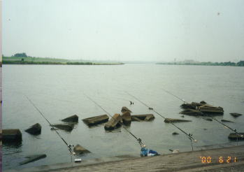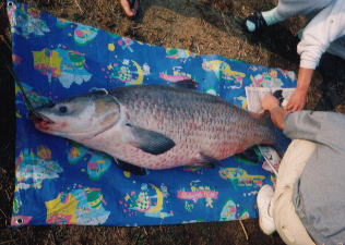 最高に幸せな時間だ。鯉と違って口切れの恐れは少ないし、思いきってドラグを締めて、自分の仕掛けを信じて力一杯戦いを楽しもう。 怖がってドラグずるずるでは釣趣は半減するし、トラブル、リスクも増える。 豪快さは国内の淡水では他に味わえない醍醐味、コイと比べて引きが云々という声もあるが、 比較すること自体がナンセンス。(同じ大きさのコイがいれば別だが。)